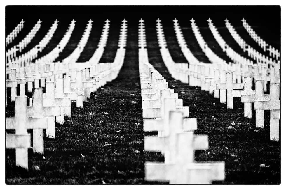 Once the initial shocks of the war had receded and normal civilian life slowly began to resume, it became clear there were gaping holes in many societies and states: those created by the absence of the millions of dead. At the same time, there were desperate attempts to forget the war and seek respite and recovery. And so a duality emerged: alongside new forms of expression that produced jazz, flappers and the great cultural output of the ‘Roaring Twenties’ or les années folles as they were known in French, mourning remained at the heart of life as a pervasive factor. And this overwhelming encounter with mass death drove remarkable endeavours of commemoration, such as had never been seen before. At a local level, memorials appeared in many cities, towns, villages and streets across the continent. In this way the personal was made public and shared: the losses of war became the glorious dead and a permanent fixture in daily life. At a national level, mass projects were commissioned: on the battlefields of the western front and many other theatres of the war, such as Italy or Gallipoli in Turkey, large cemeteries were constructed by specially created bodies in many of the former belligerent nations. Then as now, they are known in one way or another as war graves commissions. Whether the vast reaches of the cemetery in Verdun or the smaller ones in Mons or Ypres, these were and remain gardens of death and sacrifice. Each nation created its own distinct but uniform style which ran throughout all their cemeteries, with identical grave stones for all the fallen set in green grounds, with a main memorial structure either at the centre or at one end reflecting the sacrifice of the fallen and the gratitude of the nation. This was mass death made collective, palatable and restful.