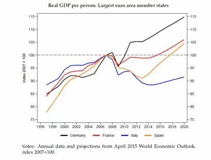 The discussion on how to steer the EZ economy out of its present quagmire has focused on two alternatives: expansion of internal demand of ‘core’ countries (Germany) or internal devaluation (wage flexibility) for the deficit (Southern European) countries. In a paper written with Andrea Ginzburg and Gianluigi Nocella (Simonazzi et al. 2013), we argued that the first solution is politically unfeasible and probably insufficient, and the second is economically unsound, socially unfeasible and ultimately counter-productive. And, indeed, it is the latter that has been carried out, until now (German GDP growth for 2015 is estimated at 1.6%, hardly a stellar growth).