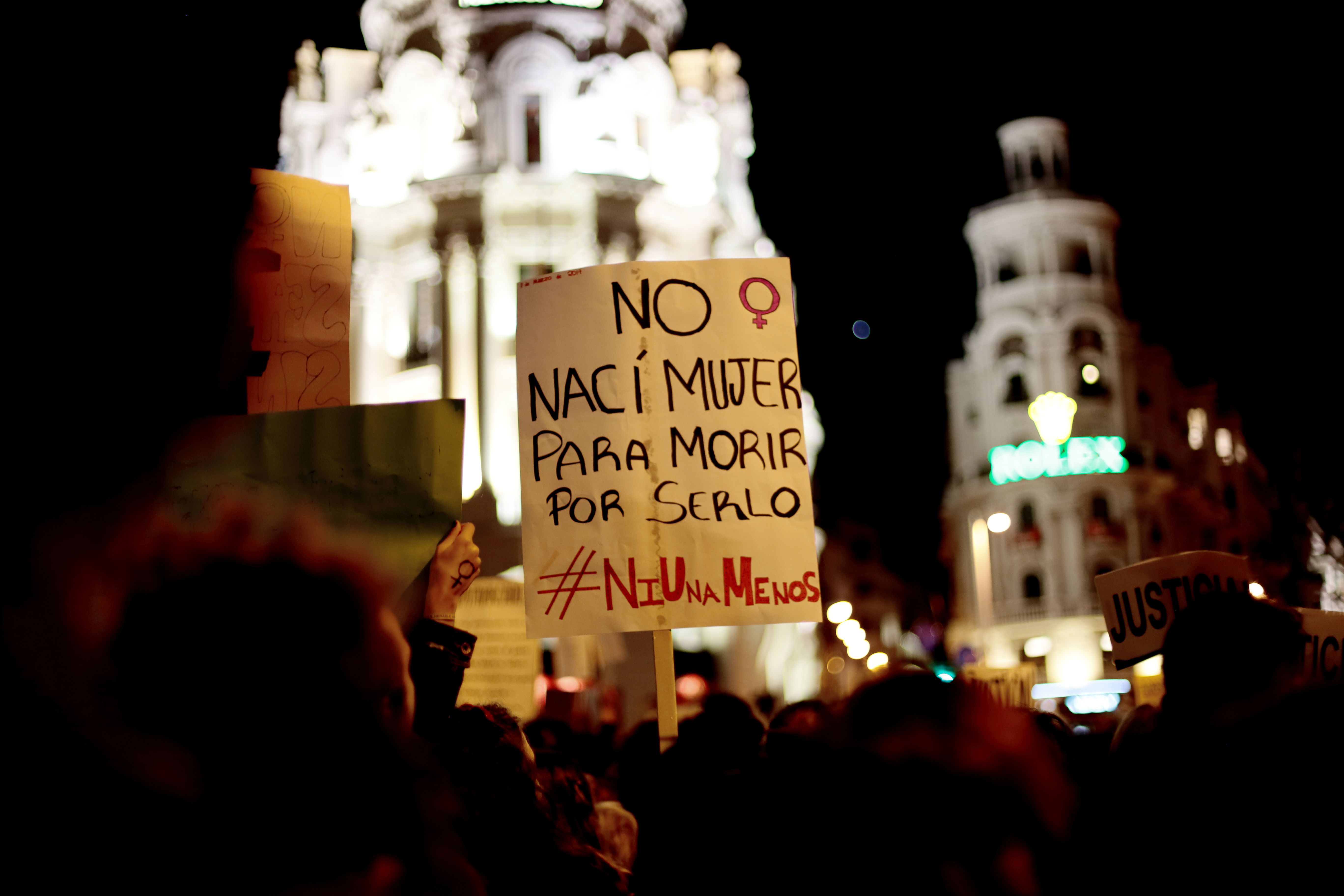 [2] Demands for end to impunity for feminicides and sexual assaults, for a fair and just wage, for the protection of children from abusive fathers, for the protection from street and web harassment, for a dignified abortion, for the secularism of the Spanish State, for equality in public office, for an education on equality, for a justice system free from stereotypes, for sufficient public funding for combating GV.