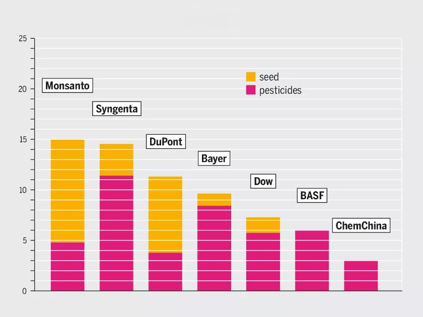 The narrowing of the oligopoly from six or seven to three members will bring Bayer-Monsanto, DuPont-Dow and ChemChina-Syngenta closer to their objective of dominating seed and pesticide markets and dictating products, prices and quality standards. All three groups are pursuing the strategy of ousting other suppliers and eliminating competitors, if necessary through acquisitions.
