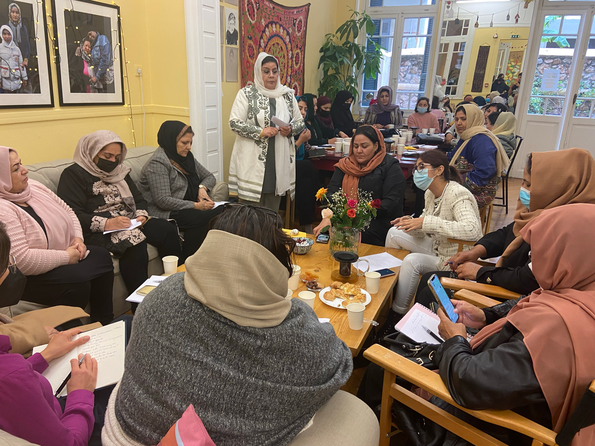 The following day, I finally met the Afghan MPs in the rooms of the Melissa Network. This organisation was instrumental in the evacuation of the women and provides them with a platform for exchange and networking. As the MPs have not all been housed in the same place since their arrival in Greece, the meeting provided them with a welcome opportunity to exchange ideas and discuss future strategies.