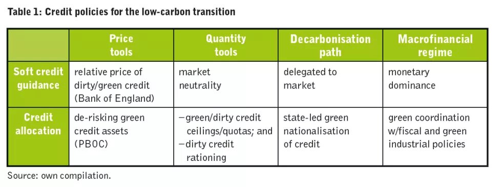 Such structural monetary policies have historically relied on quantitative tools – credit ceilings and quotas targeting level/growth rate of credit in certain sectors, or “window guidance” allocation to banks and industrial sectors in line with nominal GDP growth targets or strategic aims.[11] This green nationalisation of credit would have to go hand in hand with dirty credit rationing to reduce access to new credit for dirty activities.