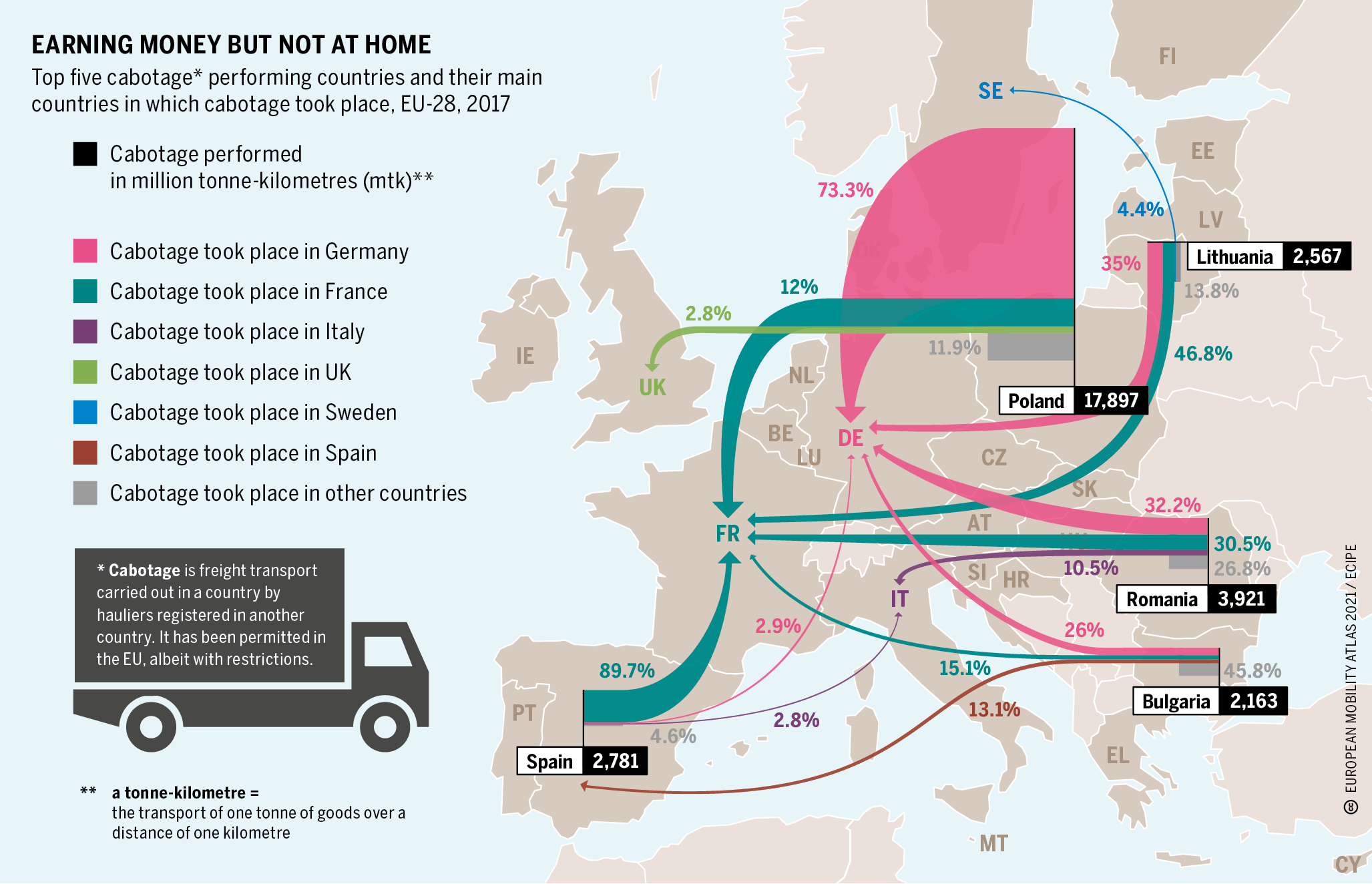 The lack of convergence in wages, social protection, collective bargaining and labour regulations among EU Member States also contributed to the increase of social dumping across Europe. This has been especially visible in the road transport sector, where many drivers come from Eastern -European countries. Current EU regulations allow road transport companies to operate under certain conditions. There are for example rules on cabotage (the national carriage of goods for hire or reward carried out by non-resident hauliers on a temporary basis in a host Member State), drivers’ work and rest time, compliance with local wages or posting of workers (employees sent by their employers to carry out a service in another EU Member State on a temporary basis). However, due to an insufficient number of inspections, these regulations have not been properly enforced. A more recent phenomenon is the increase in drivers from non-EU countries, who are more at risk of labour abuses.