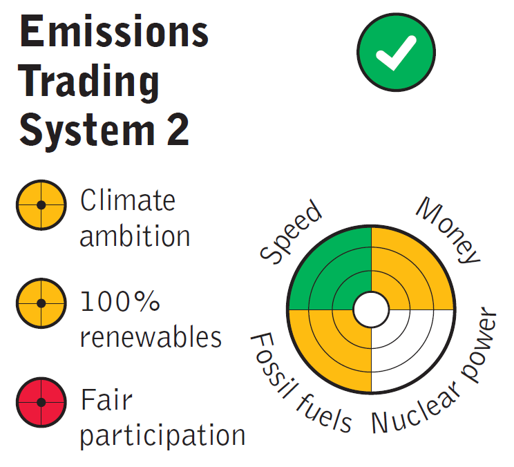 The ETS2 applies the cap and trade approach of the existing EU Emissions Trading System to the buildings and road transport sectors. They have to pay for their emissions by buying (and/or trading) emission allowances in a similar but separate system. In contrast to the ETS, not the direct polluters (users of heating systems and cars) but the fossil fuel suppliers are obliged to participate.