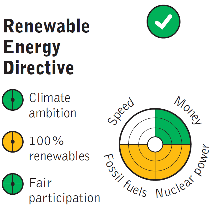 The Directive aims at the acceleration of the growth of renewable energy capacities through policies and targets that are tailored to the different sectors of consumption, e.g. industry, heating and transport. Member States have to speed up permitting of renewable energy projects and support citizens who want to engage in renewable energy communities.